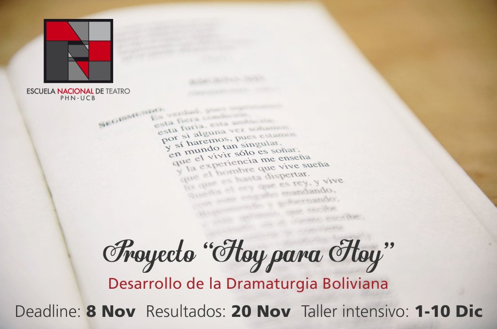Read MoreHOY para HOY Desarrollo de la Dramaturgia Boliviana La Escuela Nacional de Teatro, la Fundación Repsol, la AECID, AC/E (a través de su Programa de Internacionalización de la cultura Española – PICE) el CCELP y Air Europa se unen para llevar adelante un proyecto en beneficio del desarrollo de la joven dramaturgia boliviana, es así que proponen